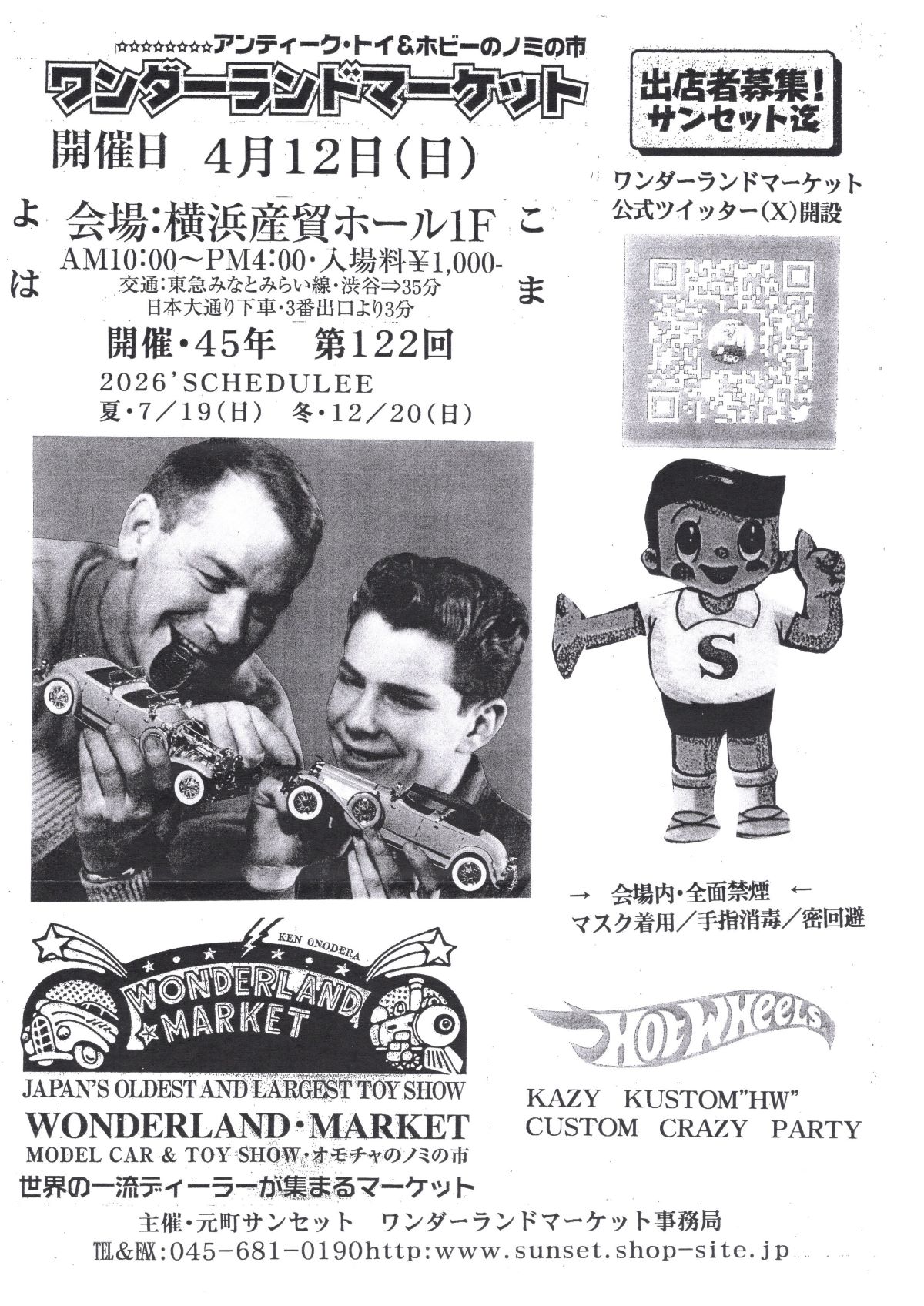 第122回 ワンダーランドマーケット出店のお知らせ イベント情報 2026.03.02 第122回 ワンダーランドマーケットに出店致します。 開催日:2026年4月12日(日)時 間:10:00〜16:00場 所:横浜産貿ホール 1F 入場料:1000円(当日)たくさんのご来場お待ちしています。 ワンダーランドマーケット公式 X(旧Twitter)のリンクはこちらになります。