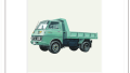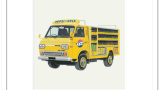 作品は、ブルーの車体の2代目エルフ250Dを北村製作所が架装した冷凍車仕様です。No.069よりも振りの角度が違い、フロント部分を強調して描かれています。